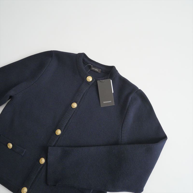 【オンラインストア・買取入荷】2023・人気完売品 未使用 anuans オリジナルボタンノーカラーニットジャケット アニュアンス