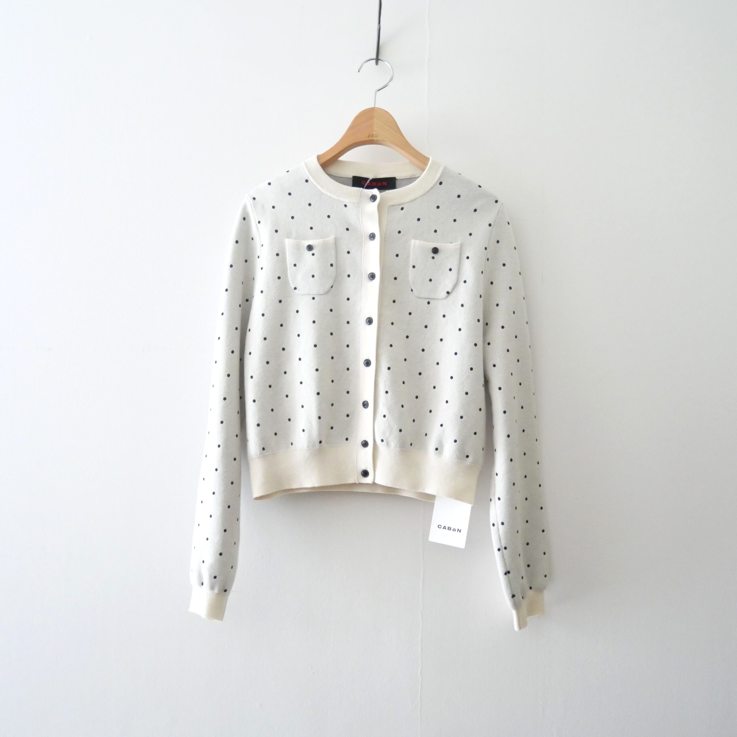コットンカシミヤ ドットジャカードクルーネックカーディガン size:F