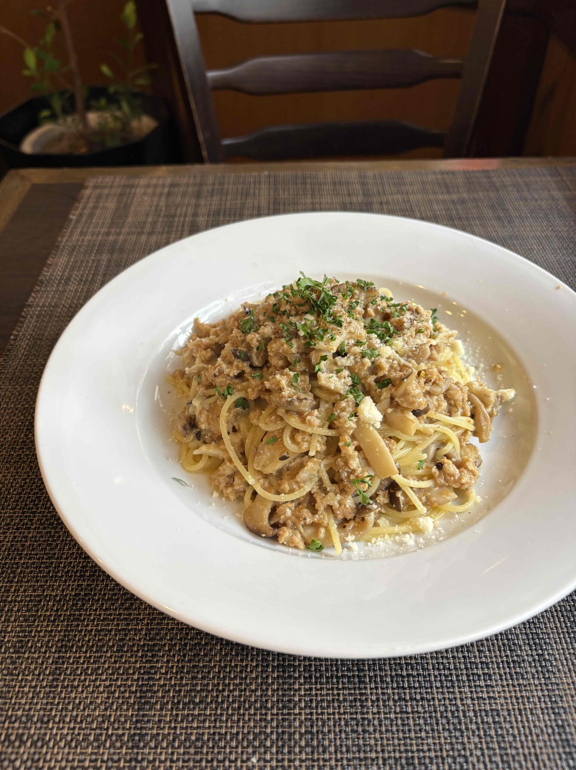 メインは鶏ひき肉とキノコのスパゲッティで、旨みたっぷりでとても美味しかっです🍝