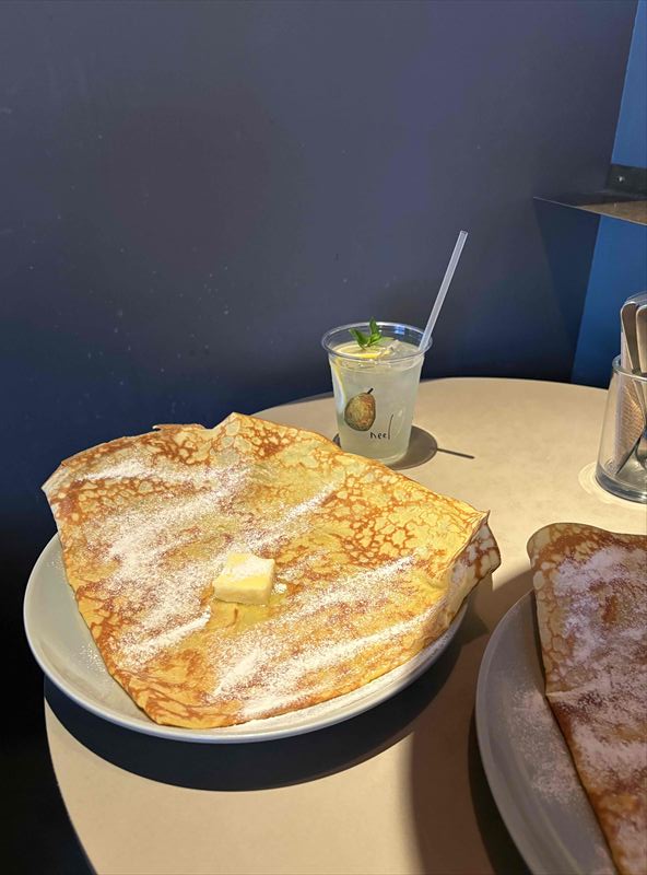冷たいドリンクと人気メニューのシュガーバタークレープを食べました😋