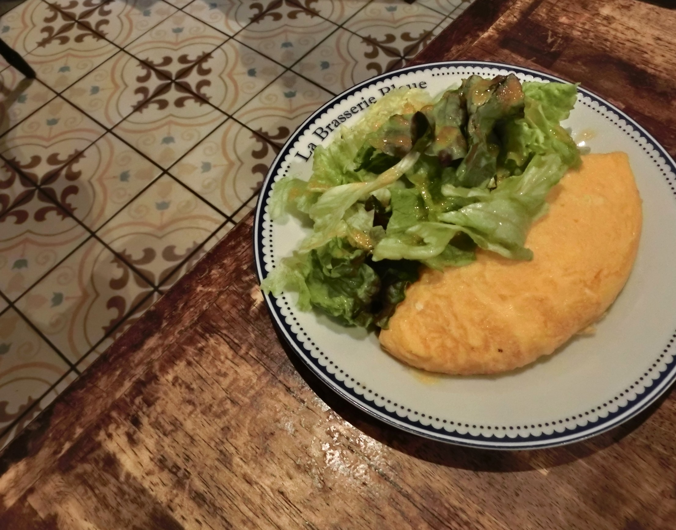 ふわふわのオムレツで小腹を満たし、パスタはプッタネスカをチョイス。